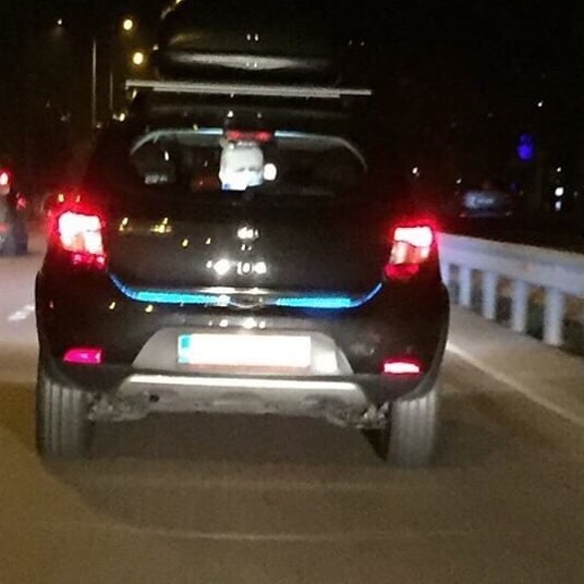Fotoğrafta, bagajında bir kedi heykeli taşıyan siyah bir araba var. Arabanın arka plakası "Kedi" yazıyor. Bu araba muhtemelen sahibi...