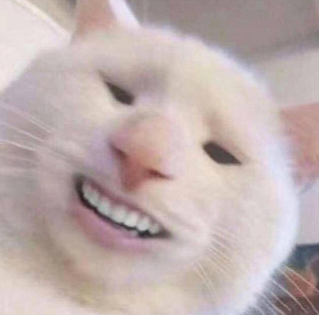 Fotoğrafta, insan suratı gibi görünen bir kedi yüzü var. Kedinin insan gibi dişleri ve dudakları var. Bu görüntüde, bir kedinin insan...