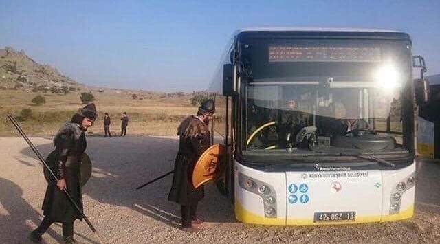 Fotoğrafta, bir otobüs durağında bekleyen bir otobüste insanlar oturmuş ve yolculuklarını beklerken görülüyor. Otobüsün hemen önünde...