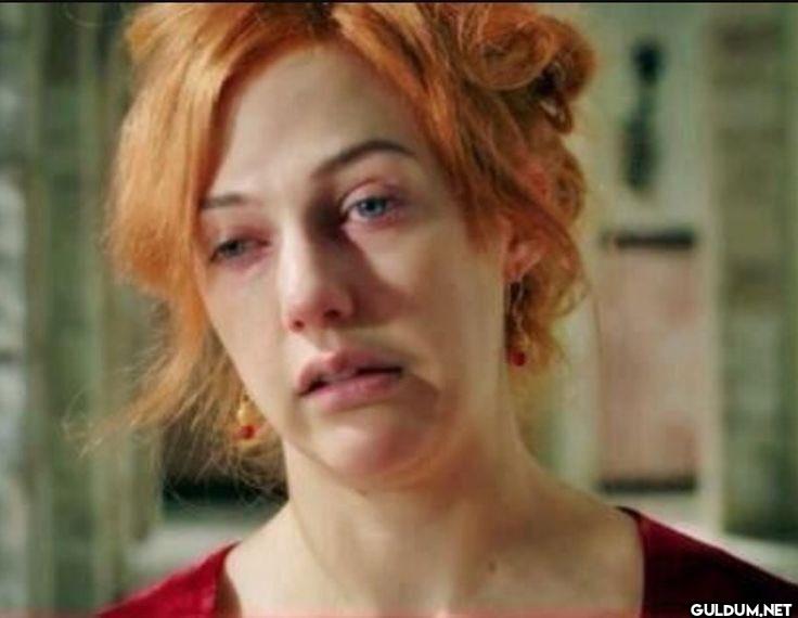 Fotoğrafta, kırmızı saçlı ve üzgün görünen bir kadın var. Yüzü duygusal bir ifadeyle dolu ve gözleri yaşarmış gibi duruyor. Muhtemelen...
