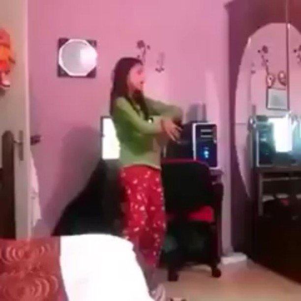 Fotoğrafta, kırmızı pijama üstü ve yeşil bir üst giyen genç bir kadın görüyoruz. O, masanın üzerindeki bir bilgisayara doğru eğilmiş ve...