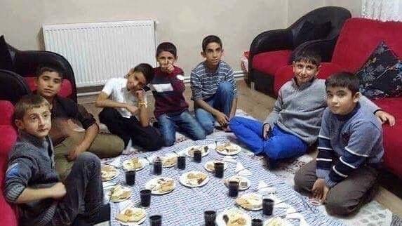 Fotoğrafta, bir evde toplanmış, bir masanın etrafında oturan 7 çocuk görünüyor. Hepsi yemek yiyor, sohbet ediyor gibi görünüyor....