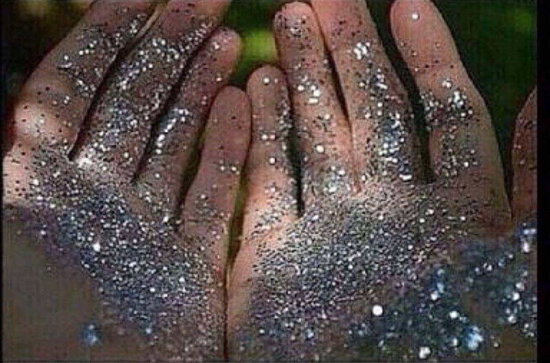 Fotoğrafta, ellerinde bol miktarda sim olan iki el görüyoruz. Bu fotoğraftaki espri, simin parıltısının ve ellerin görünümünün,...