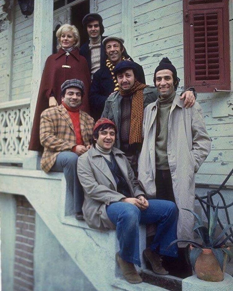 Fotoğrafta, "Gırgır" adlı mizah dergisinden bir grup karikatürist görünüyor. Onlardan bazıları şunlardır: * **Öğretmen rolünde Cemal...