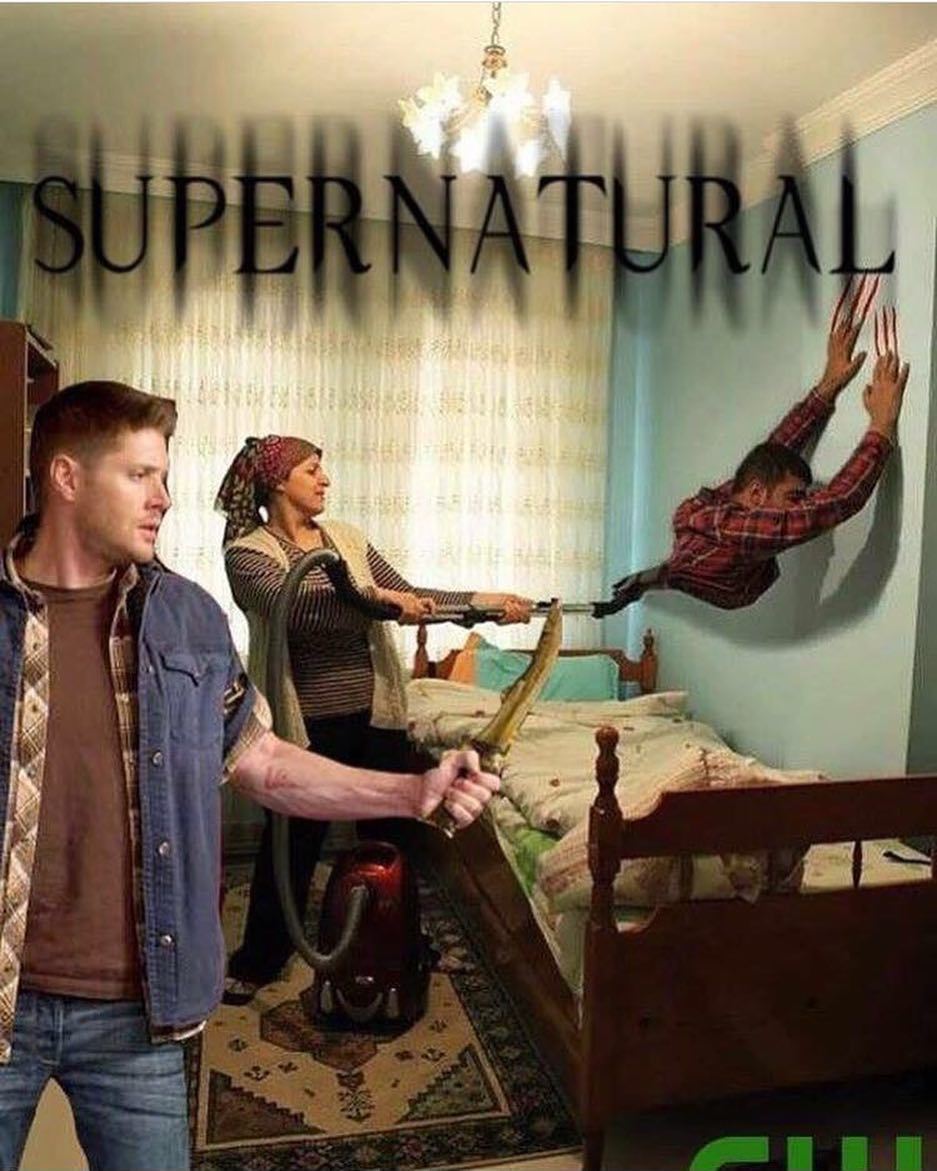 Fotoğrafta, bir odada üç kişi var. İki kişi süpürgeyle bir adamın duvarı tırmaladığı anı yakalamaya çalışıyorlar. Fotoğrafın mizahı,...