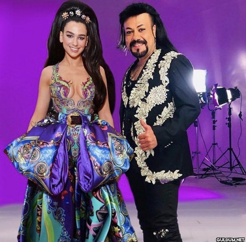 Fotoğrafta, Dua Lipa ve Bülent Ersoy bir arada görülüyor. Dua Lipa, gösterişli bir elbise giymiş ve saçları yukarı doğru taranmış....