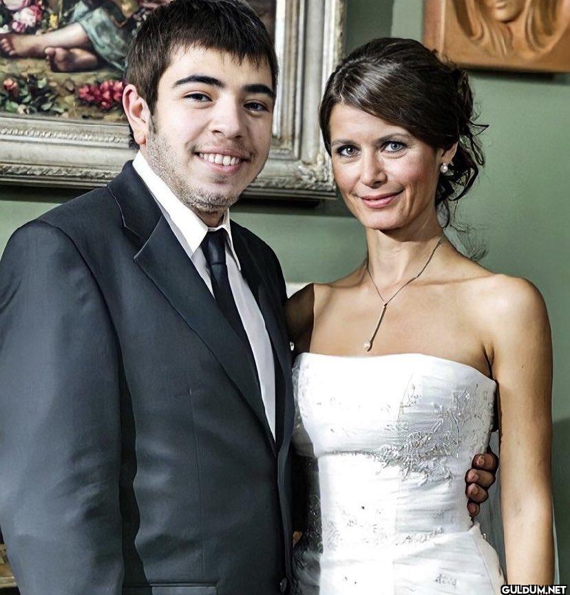 Fotoğrafta, muhtemelen yeni evlenmiş bir çift görüyoruz. Erkek, koyu renk bir takım elbise giymiş ve gülümseyerek kameraya bakıyor....