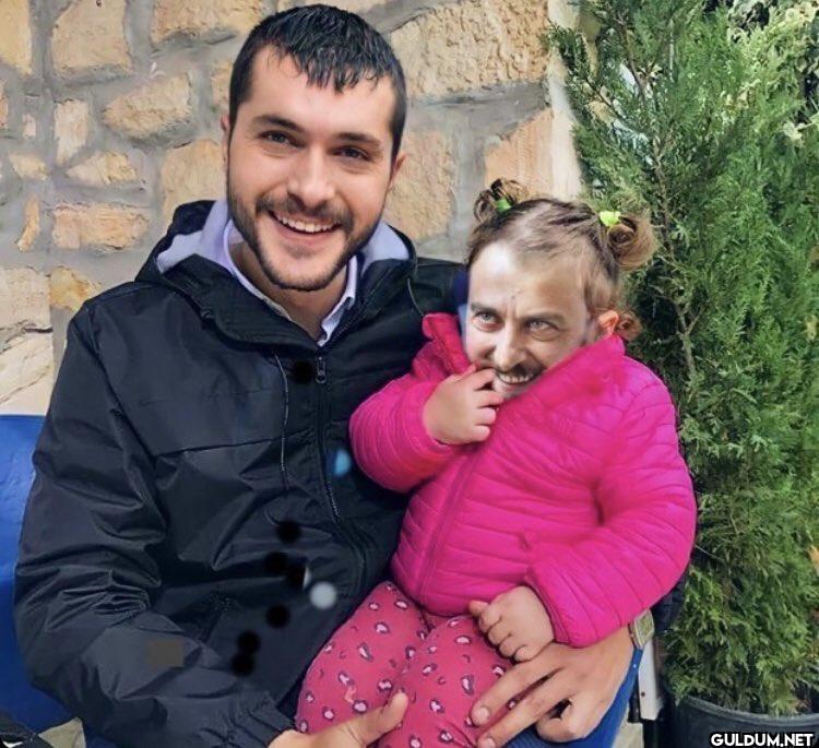 Fotoğrafta bir adam bir çocuğu kucağına almış. Adamın ve çocuğun yüzleri değiştirilmiş. Çocuğun yüzü bir erkeğin yüzüyle değiştirilmiş...