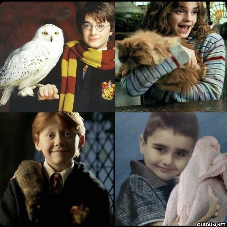 Elbette, fotoğrafı açıklayabilirim: Fotoğrafta, "Harry Potter" film serisinden dört karakterin (Harry, Hermione, Ron ve benzer bir...