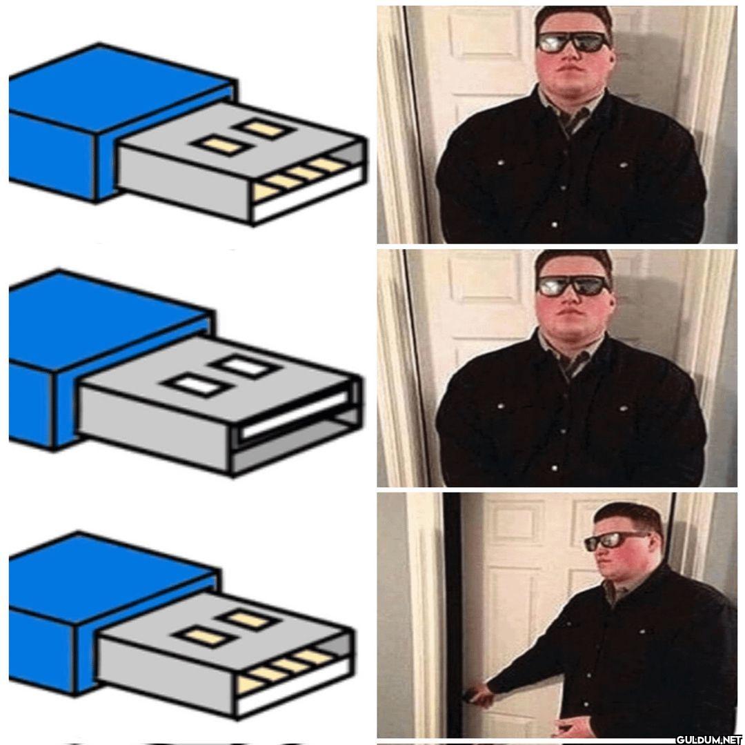 Elbette, işte fotoğrafın açıklaması ve espri: **Fotoğrafta Ne Var:** Fotoğrafta, sırayla üç tane USB portu çizimi ve bu çizimlerin her...